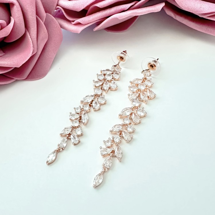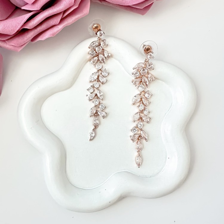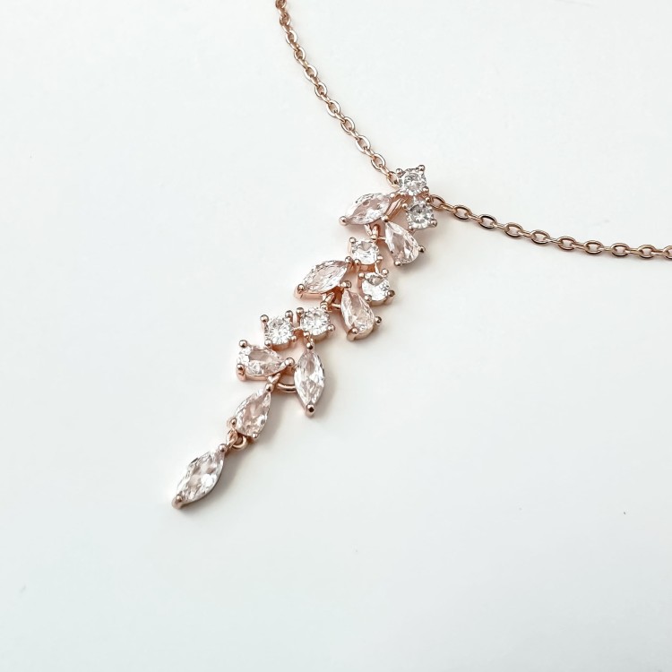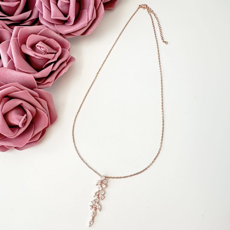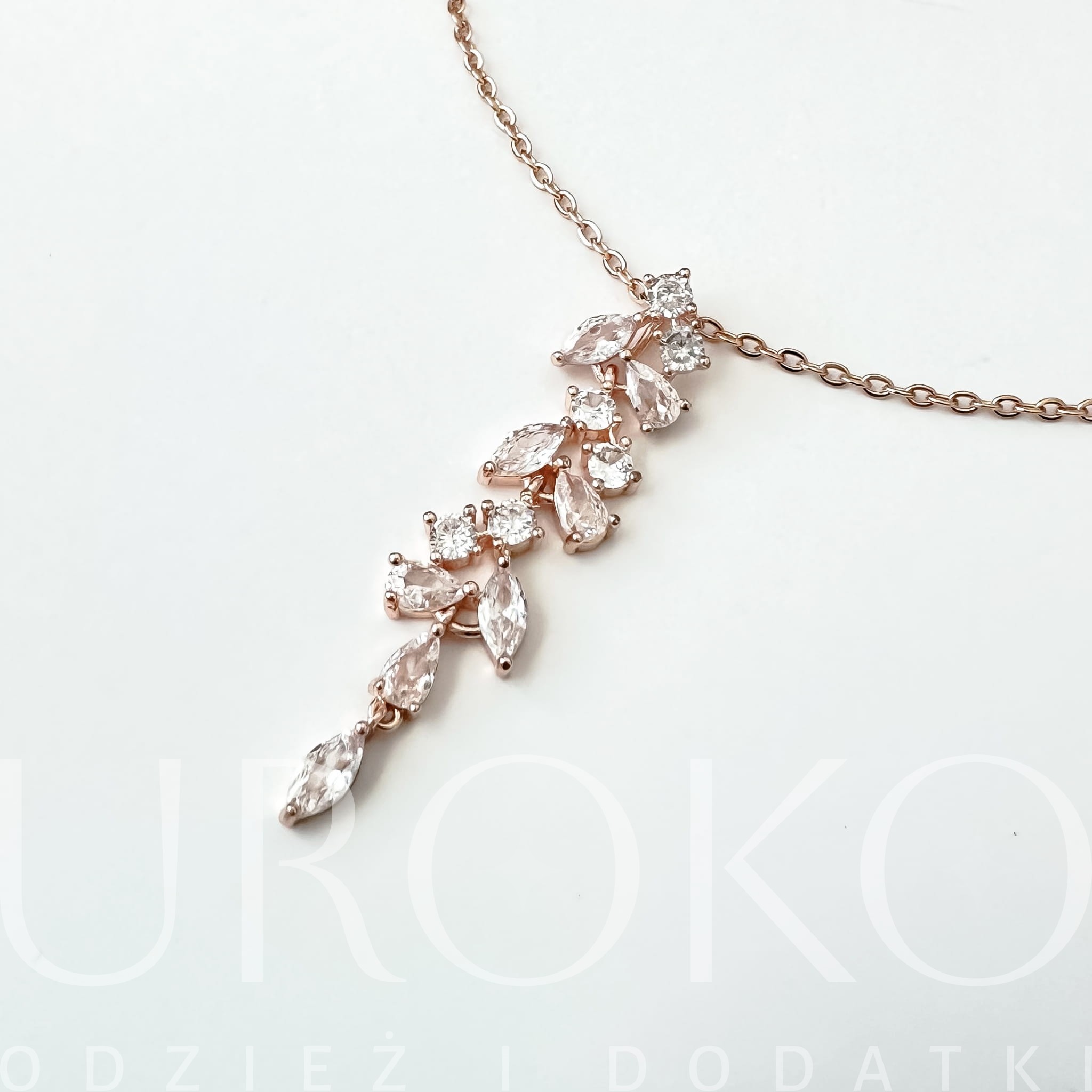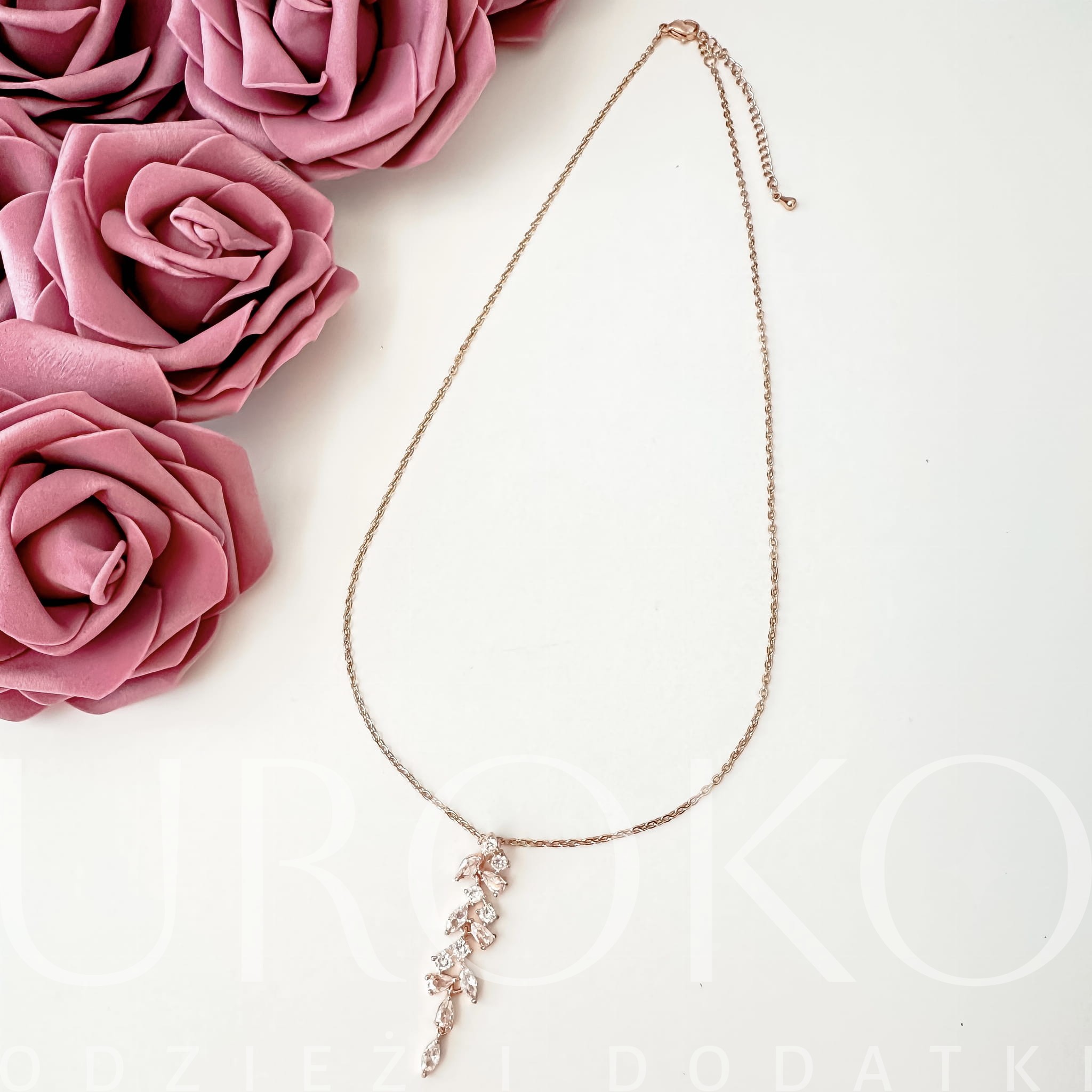 Producent UrokoRóżowe złoto komplet zestaw ślubny biżuterii Grace listki z cyrkoniami naszyjnik + kolczyki
