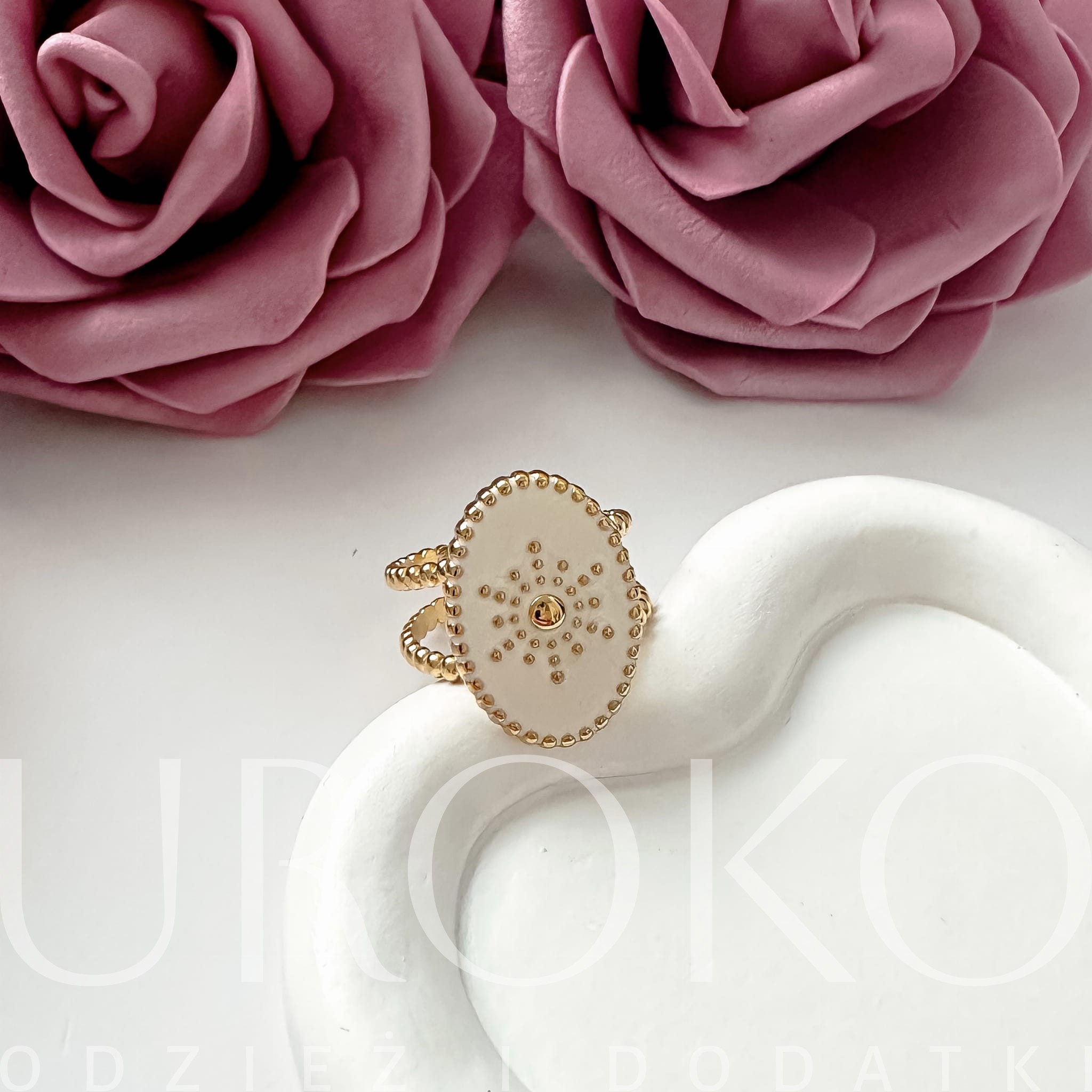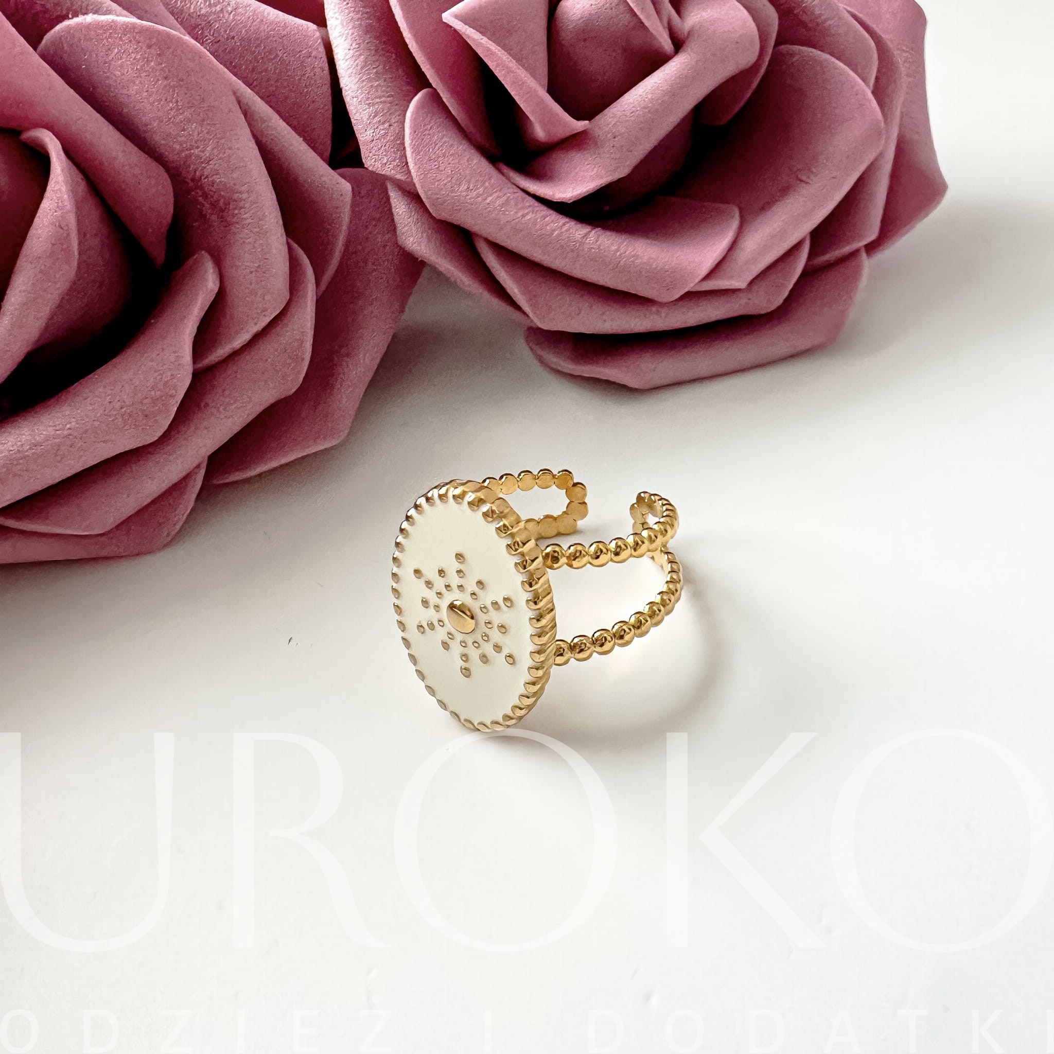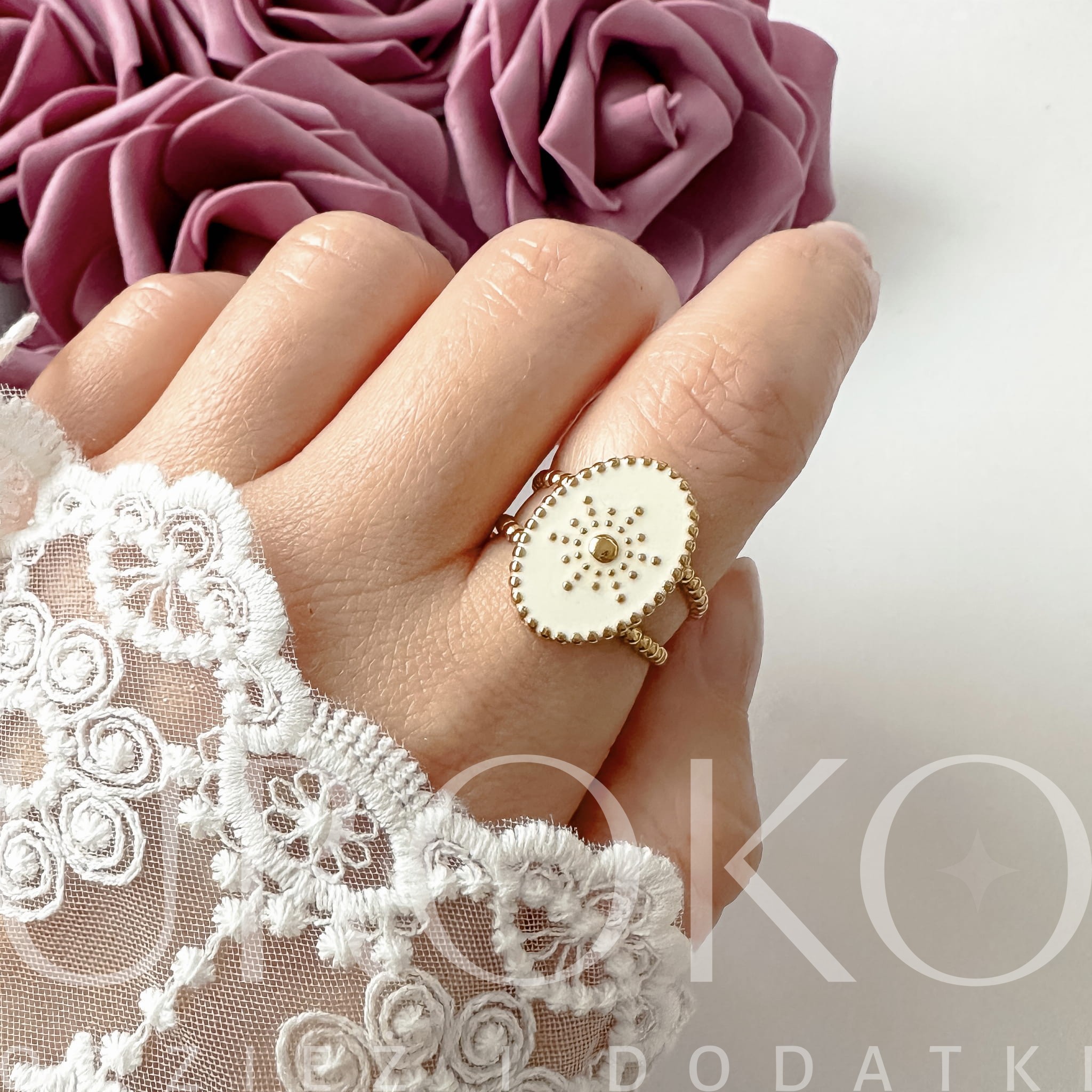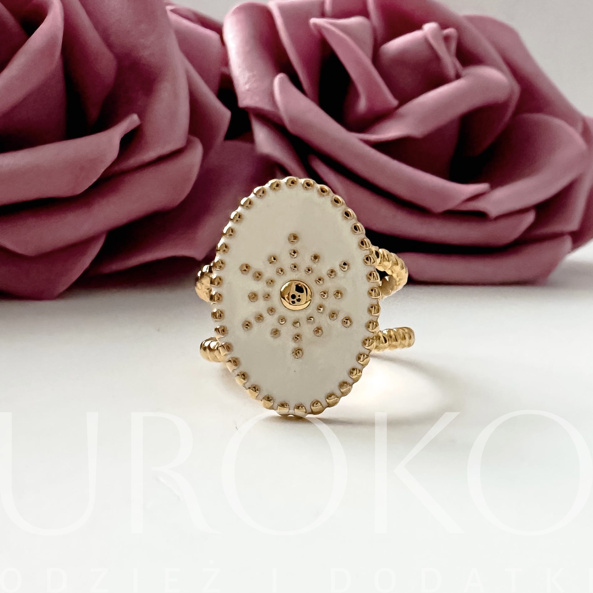 Wyjątkowy biało-złoty pierścionek z motywem Słońca