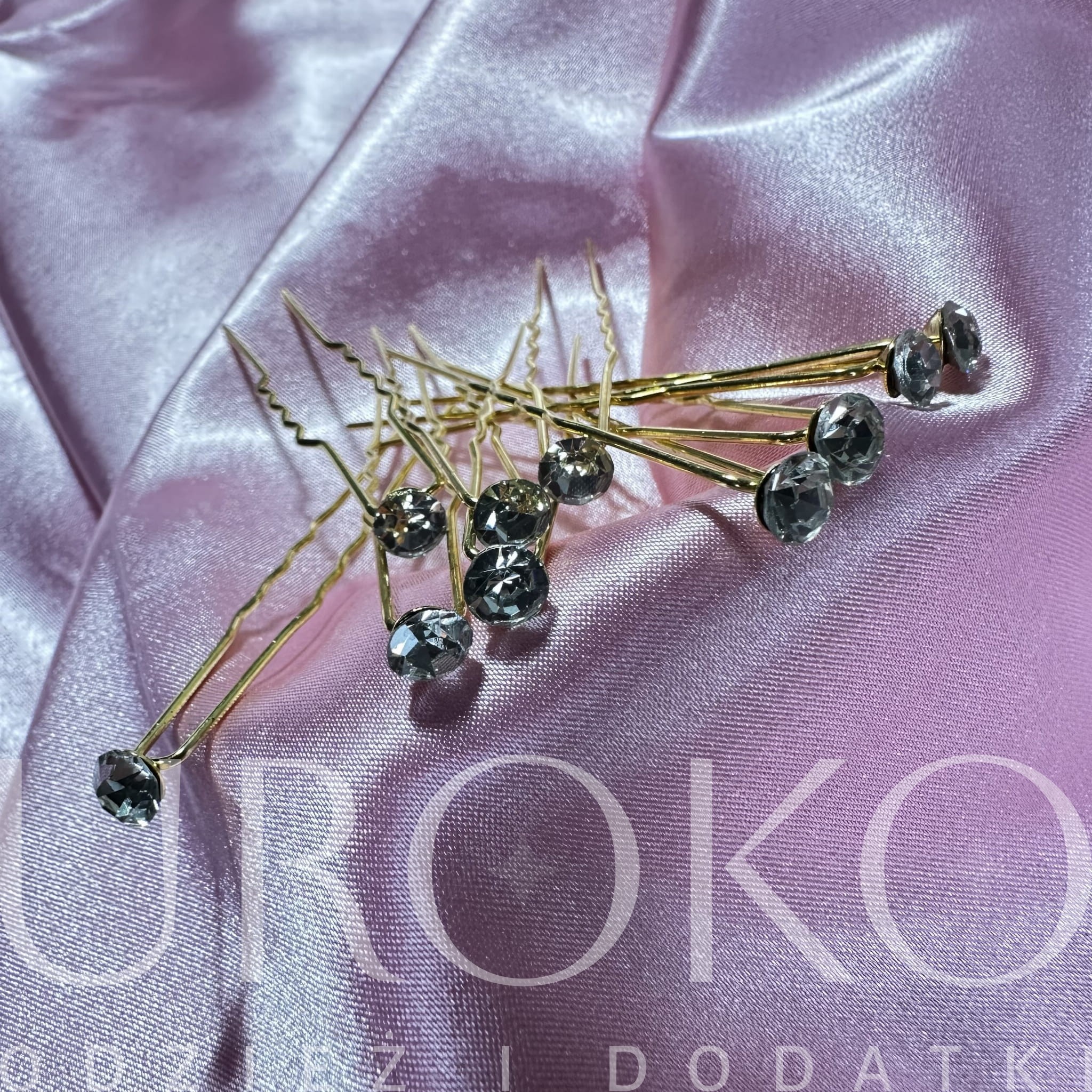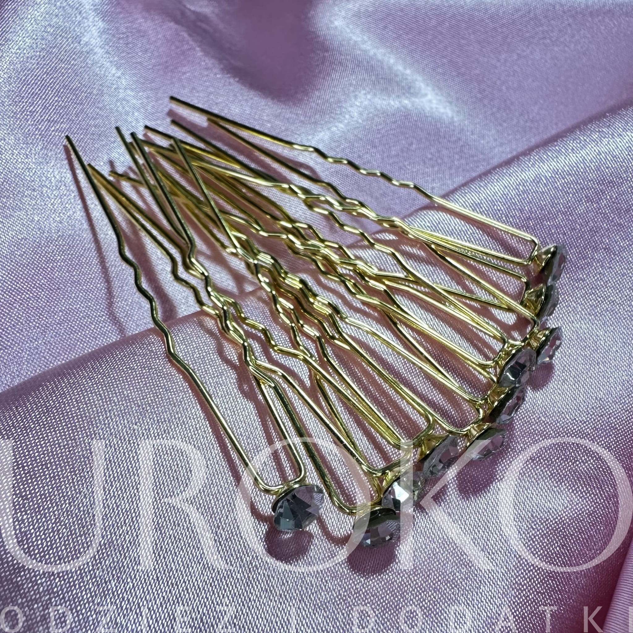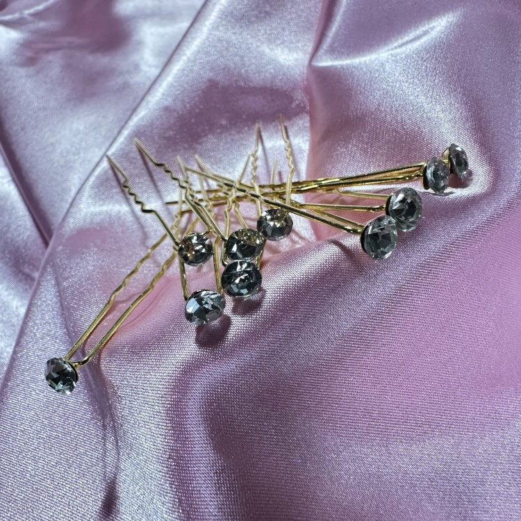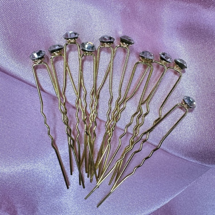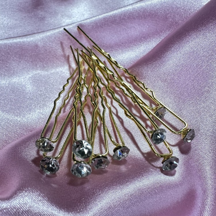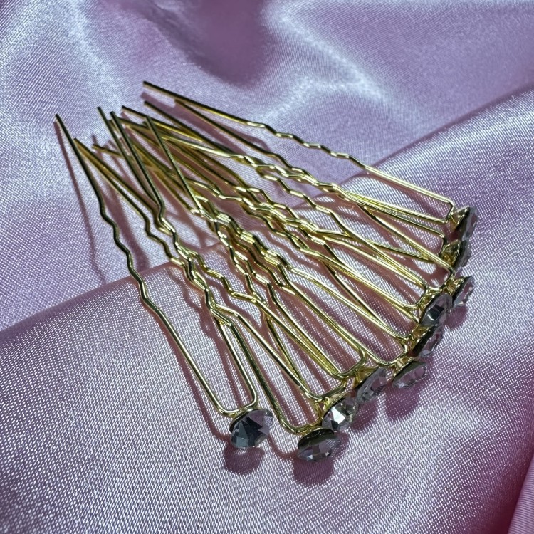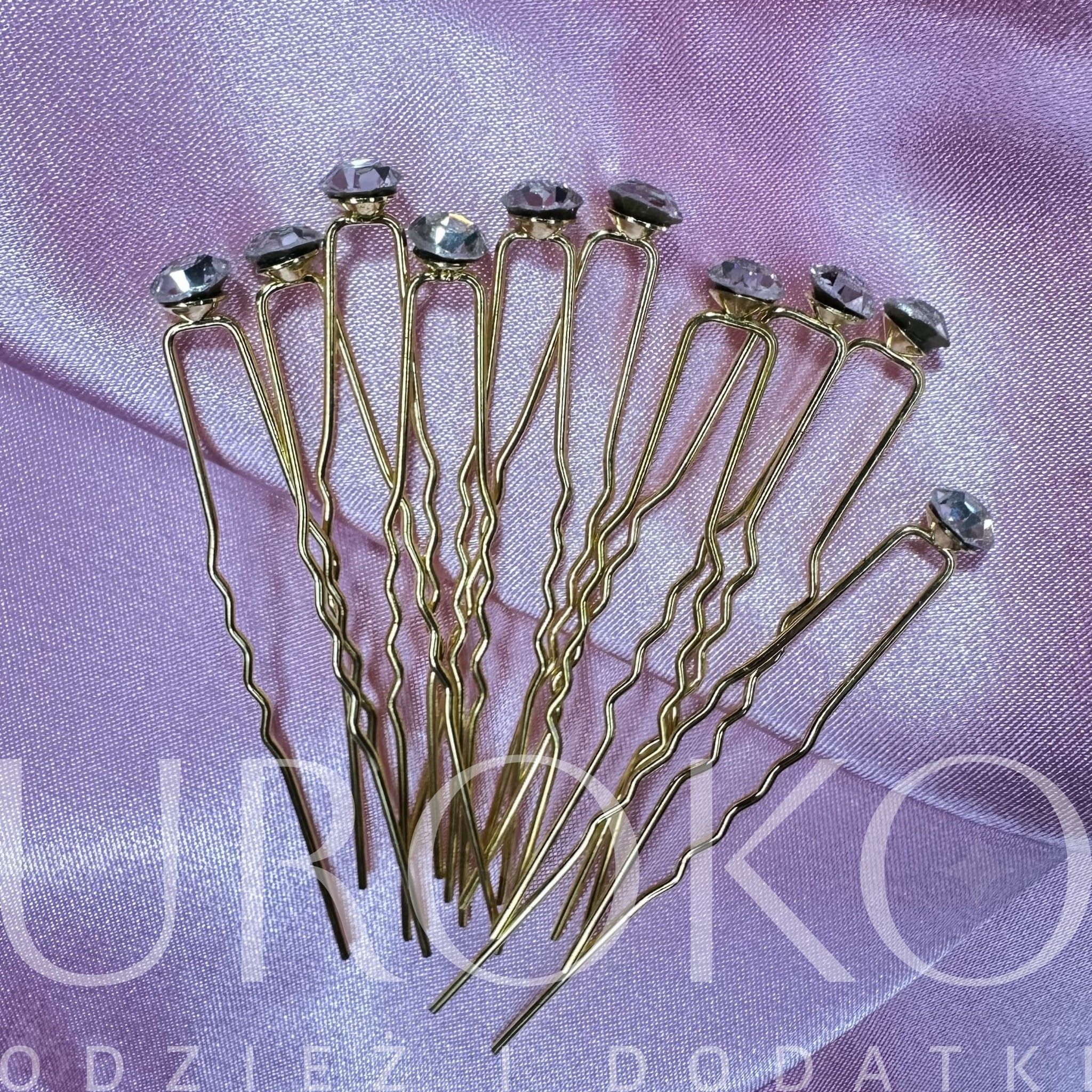 Ślubne wsuwki klasyczne kokówki 10 szt złote z białymi cyrkoniami równej wielkości